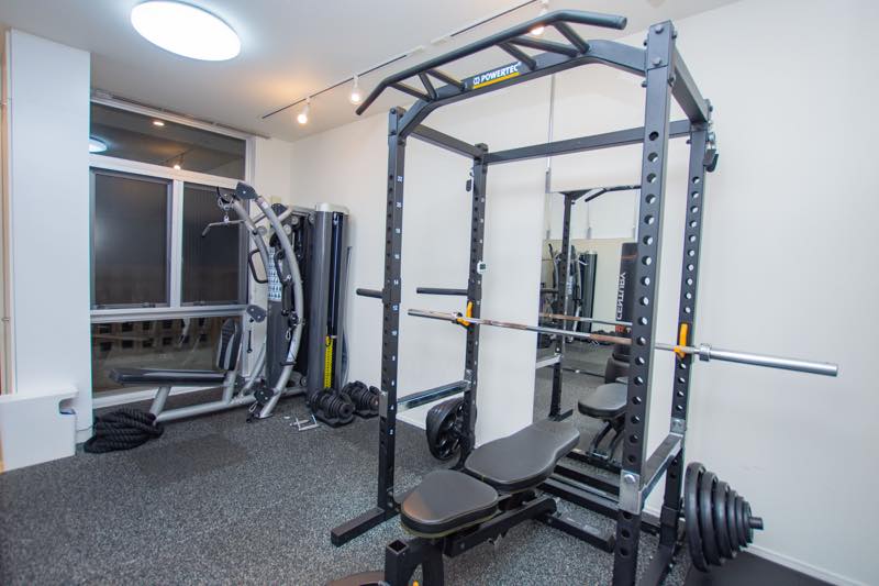 ・ジムエリアとストレッチエリアが分かれていて様々トレーニングが可能